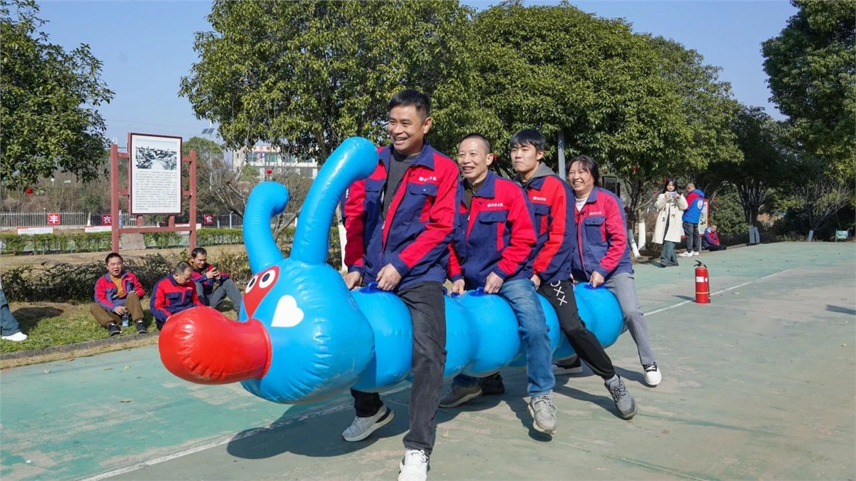 拓展項目的設計更是獨具匠心,通過毛毛蟲、棍子轉圈圈等活動,充分激發各組的團結協作能力,大家你追我趕,奮勇當先。現場歡聲笑語不斷,吶喊助威聲此起彼伏,在輕松愉快的氛圍中,各部門職工增進了彼此的了解,收獲了團結與成長。