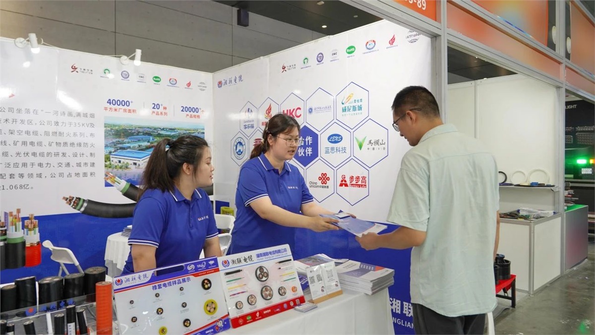 在展會現場,湘聯電纜圍繞光伏發電、新能源汽車、重型裝備等發展應用場景,與國內外參展觀眾就電線電纜的解決方案展開深入溝通與交流,生動呈現了公司產品在建筑工程、能源、電力等領域的廣泛應用,贏得了廣泛關注。