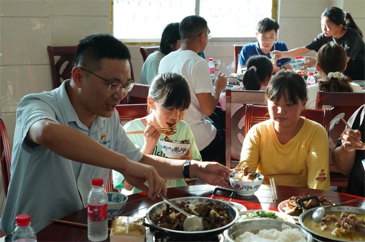 助學不僅是物質上的援助,更重要的是對孩子們精神上的激勵與引導。為了拉近與受助學生的情感距離,在瀏陽經開區駐苗兒灘幫扶工作隊和苗兒灘政府的協調幫助下,8月22日傍晚,湘聯電纜“芯”光助學基金會邀請受助孩子和其家長們來到苗兒灘政府,通過一起吃晚餐和開展座談會的形式,與受助學生面對面交流,了解他們的學習和生活情況,并鼓勵學生們要立志向上,好好學習,砥礪成才。