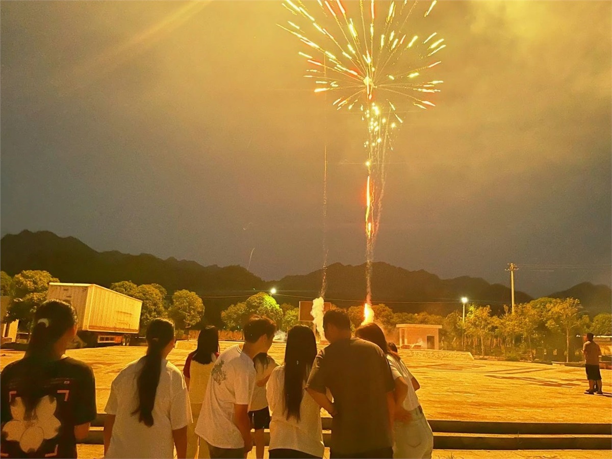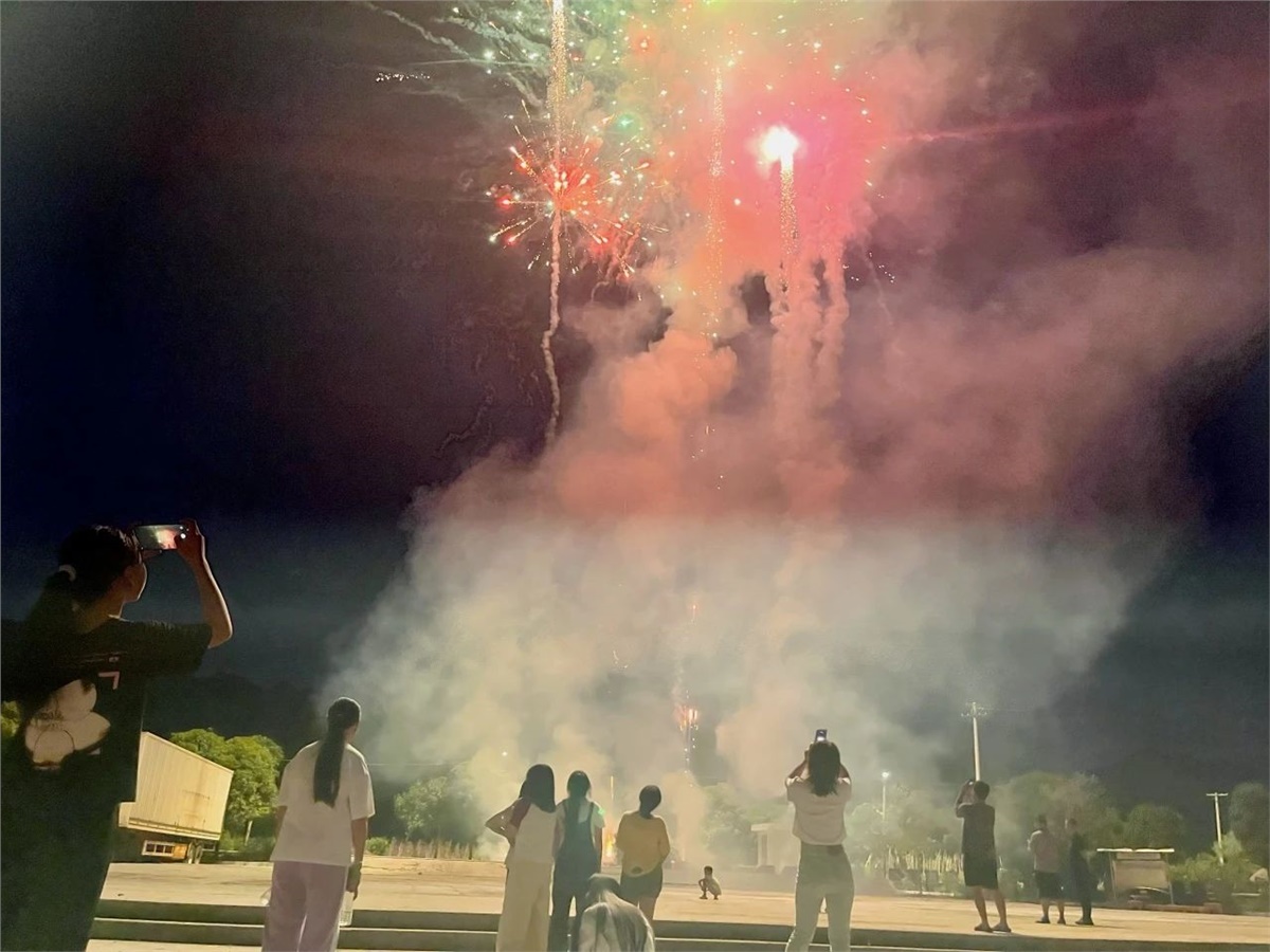 ▲絢麗的煙花給孩子們創造了一個愉快的夜晚
